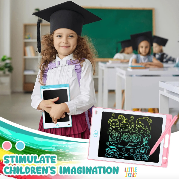 ➡Multi-Color LCD Display: Unlike the monochrome (single-color) display of standard tablets, this model features a colorful screen that creates vibrant, rainbow-gradient lines to make drawings pop.
